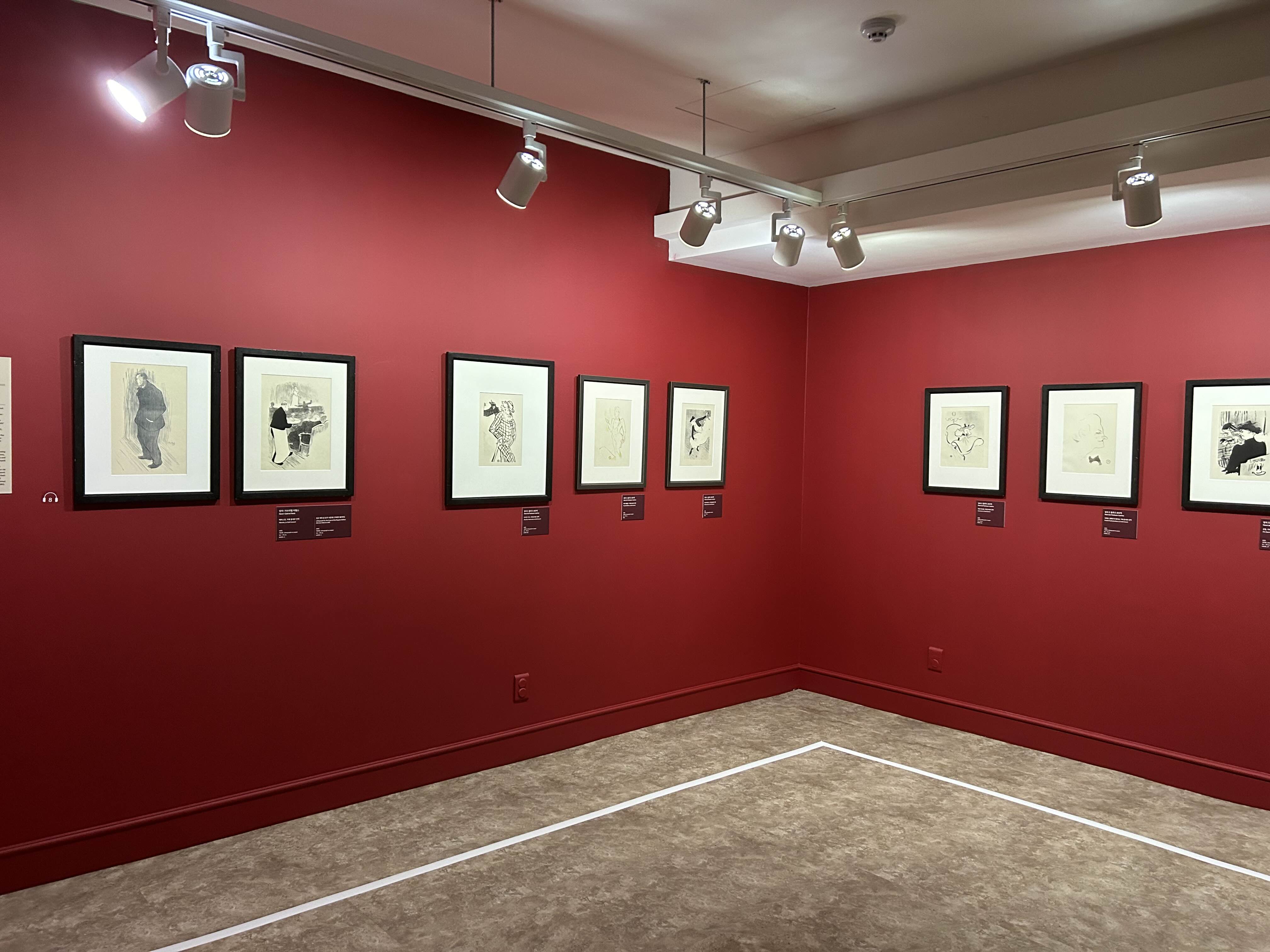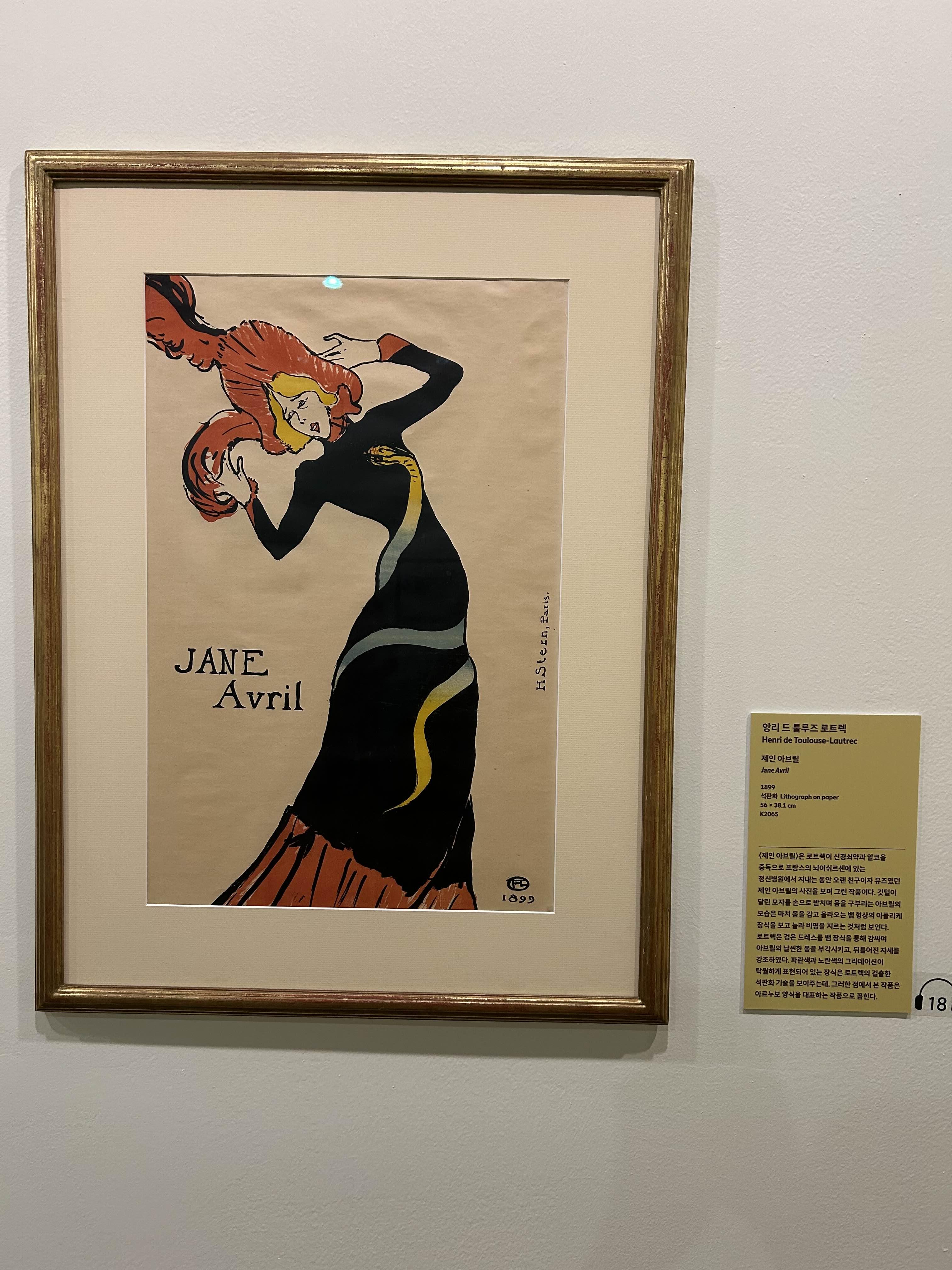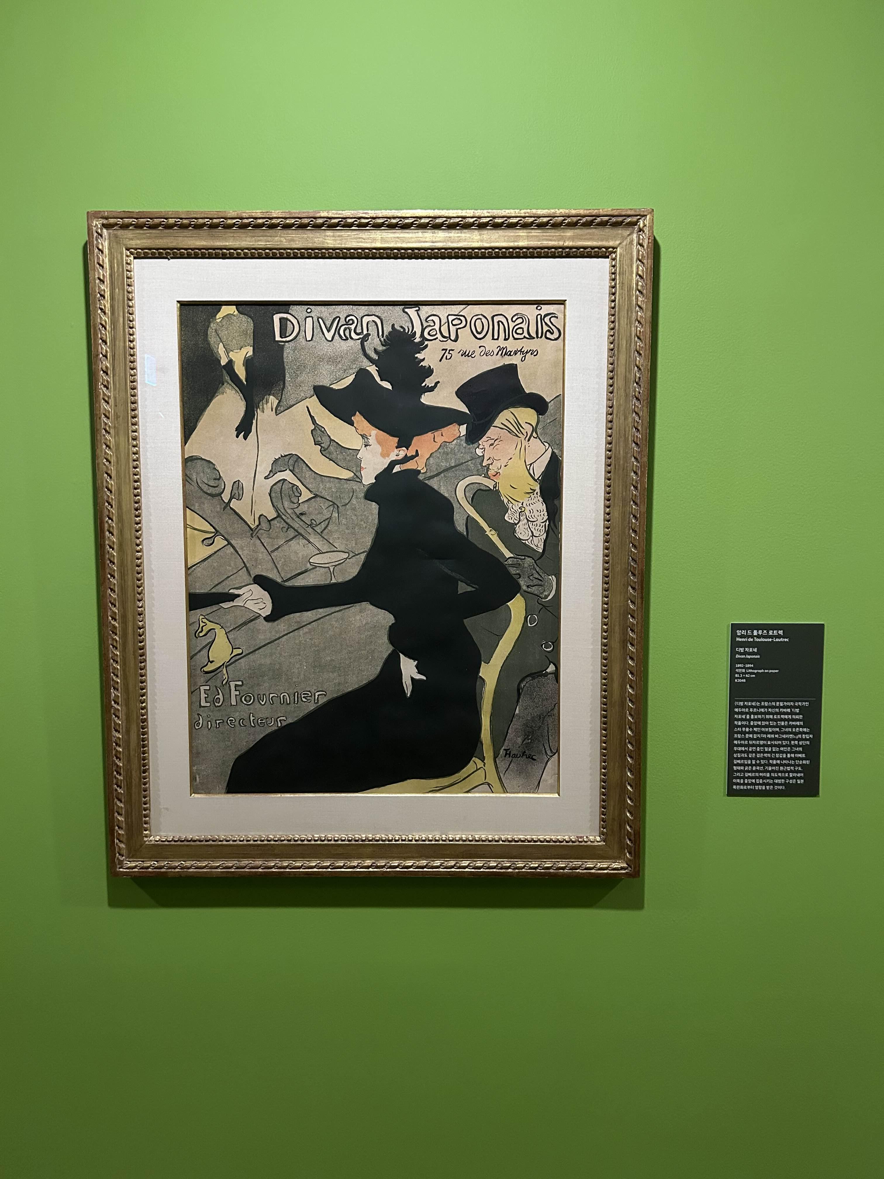 로트렉의 스타일이 전시된 다른 화가들의 스타일보다 선이 더 자유로우면서 자포니즘 영향 때문인지 더 평면적.