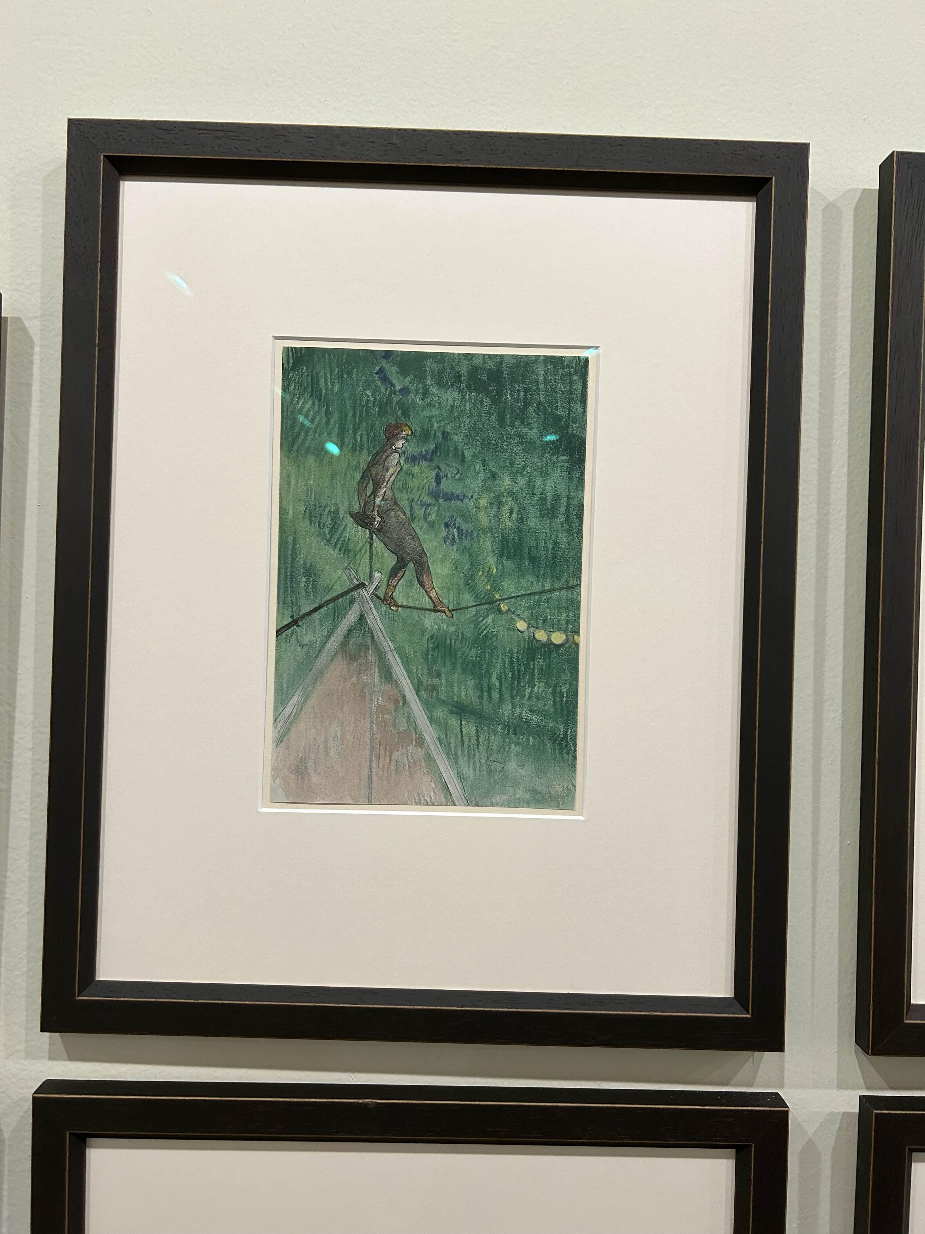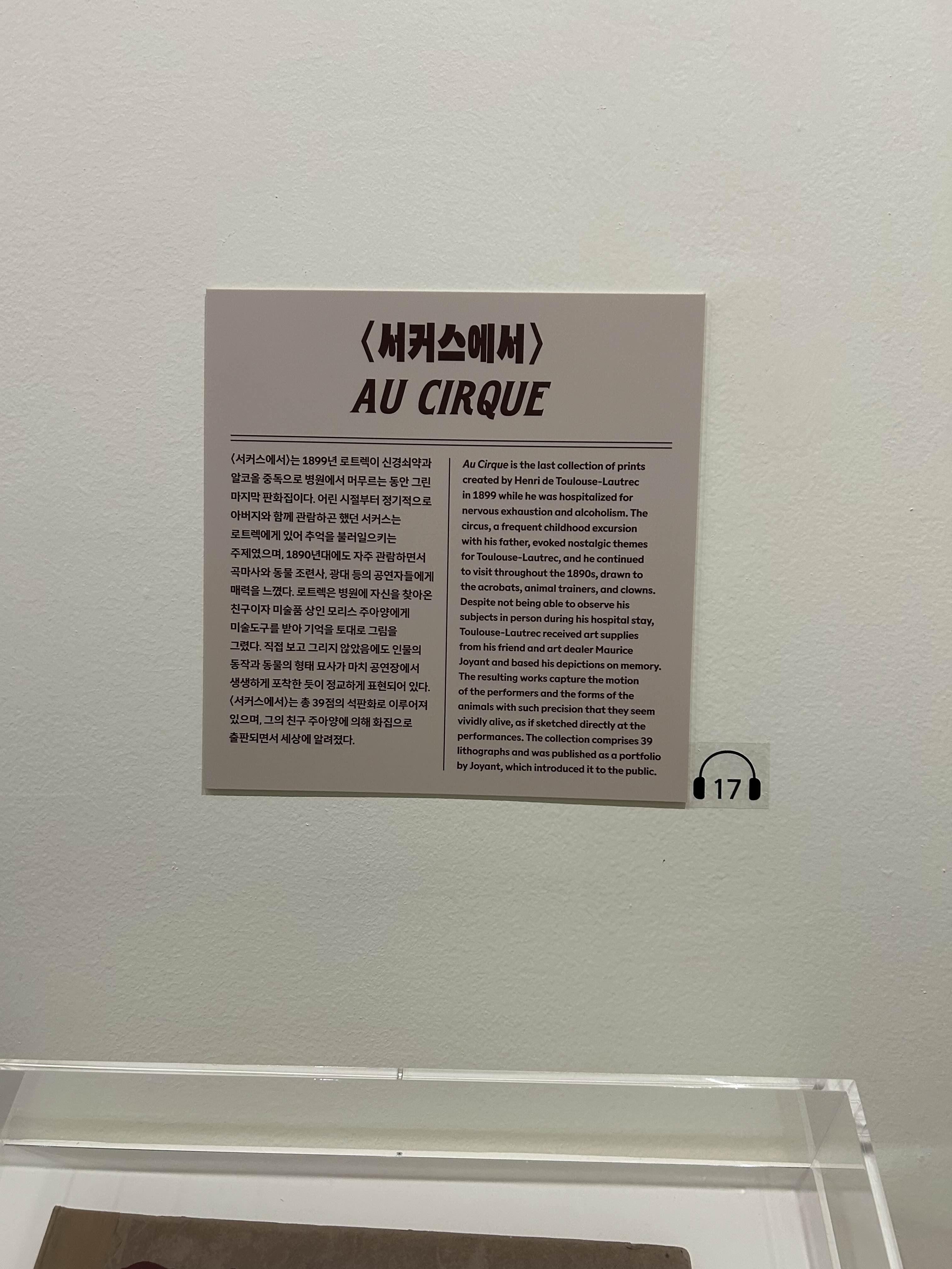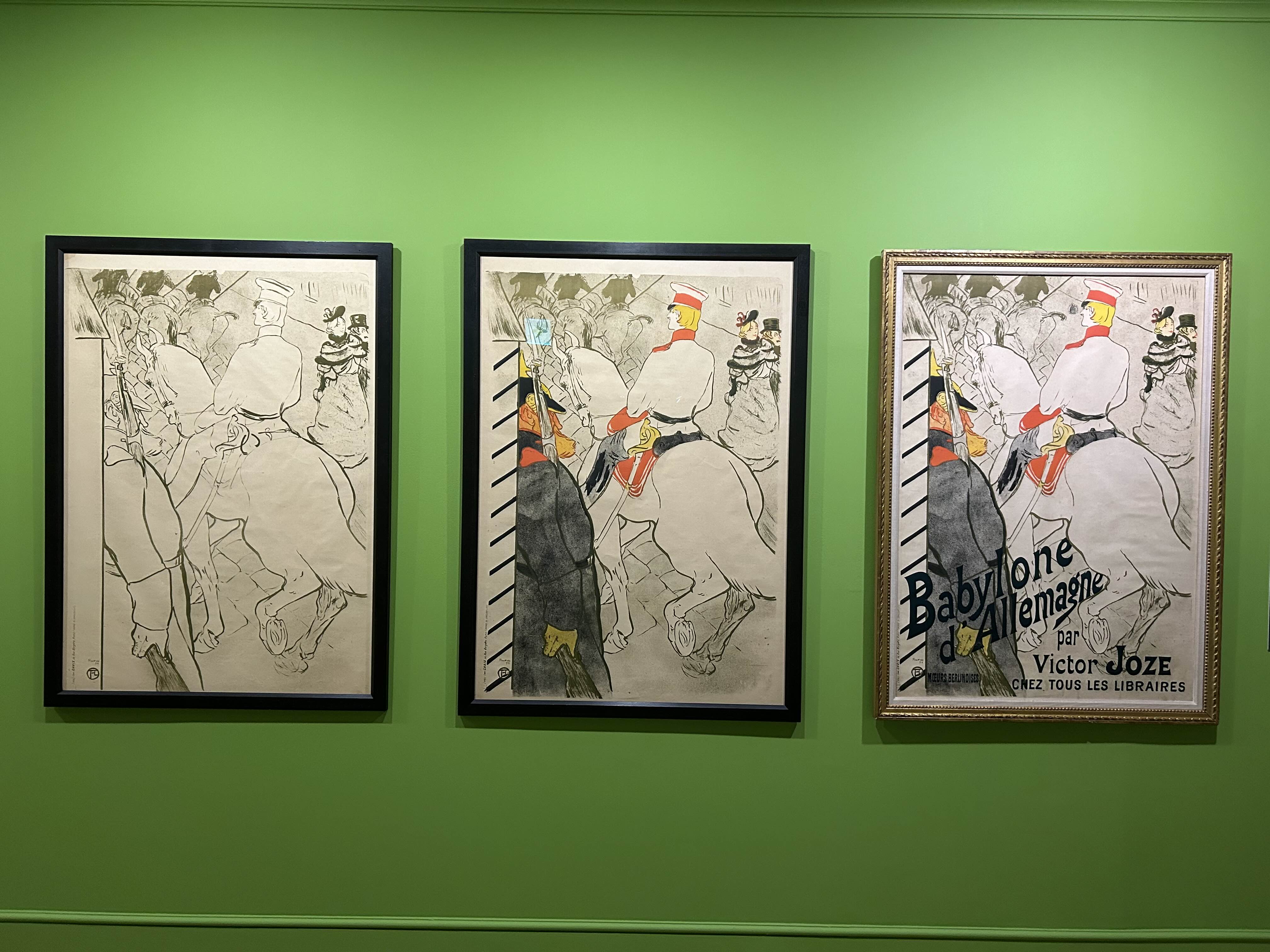 로트렉의 스타일이 전시된 다른 화가들의 스타일보다 선이 더 자유로우면서 자포니즘 영향 때문인지 더 평면적.